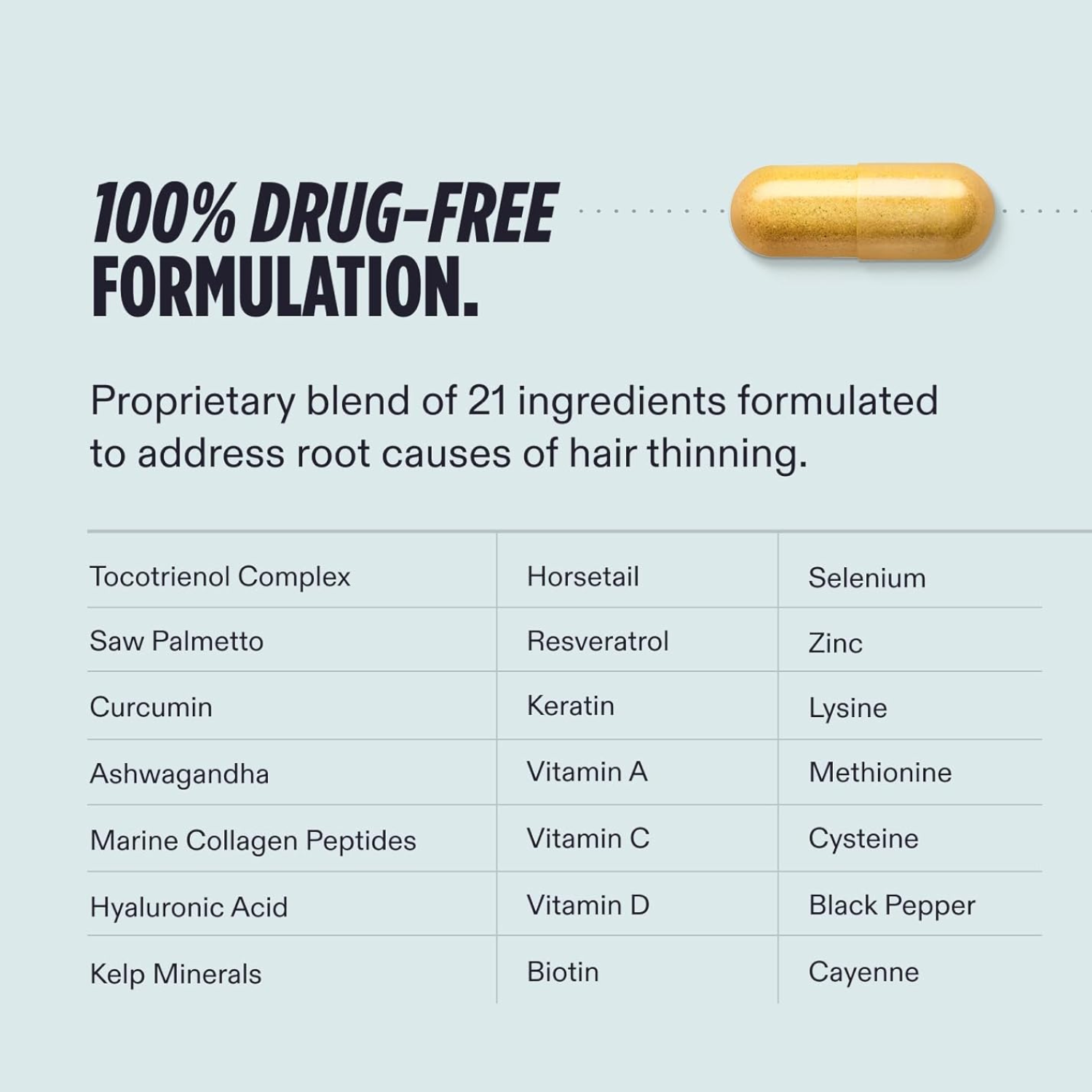 Targets key causes of hair thinning: stress, hormones, and nutrition